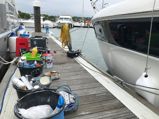 Buffing/cleaning/detailing - from our boatshed we have the perfect place for this - we like to pre wash, snowfoam, buff & wax.
